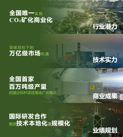 It stands as the sole enterprise in China capable of achieving large-scale commercialization of mineralization-based CO2 removal and is also the only Chinese enterprise to have obtained the EU NG certification for CCUS (Carbon Capture,Utilization,and Storage)-related CO2 utilization.